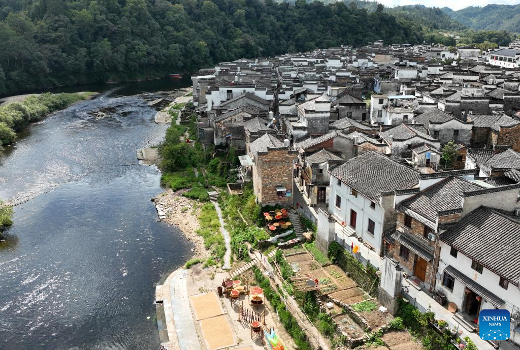 An aerial drone photo taken on Sept. 20, 2024 shows Wangkou Village of Wuyuan County, east China's Jiangxi Province. (Xinhua/Wan Xiang)