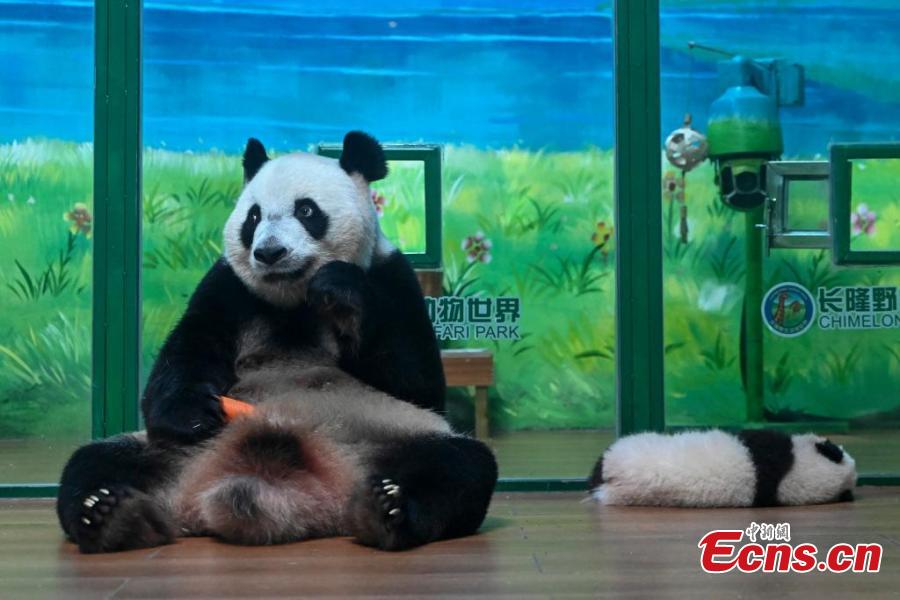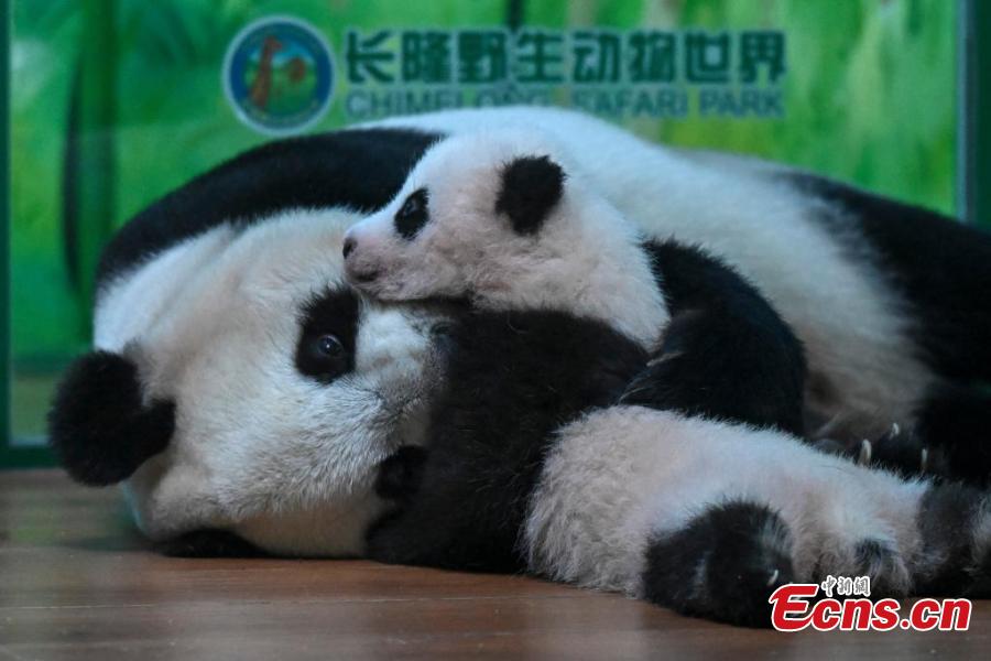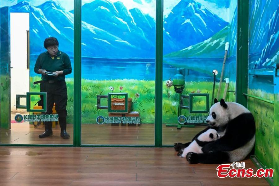 Giant panda cub nicknamed "Mei Zhu" lives with her mother Meng Meng at the Guangzhou Chimelong Safari Park in Guangzhou, south China's Guangdong Province, Sept. 21, 2024. (Photo: China News Service/Chen Jimin)