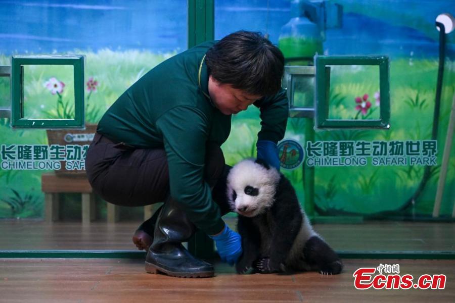 Giant panda cub nicknamed "Mei Zhu" receives a medical check at the Guangzhou Chimelong Safari Park in Guangzhou, south China's Guangdong Province, Sept. 21, 2024. (Photo: China News Service/Chen Jimin)