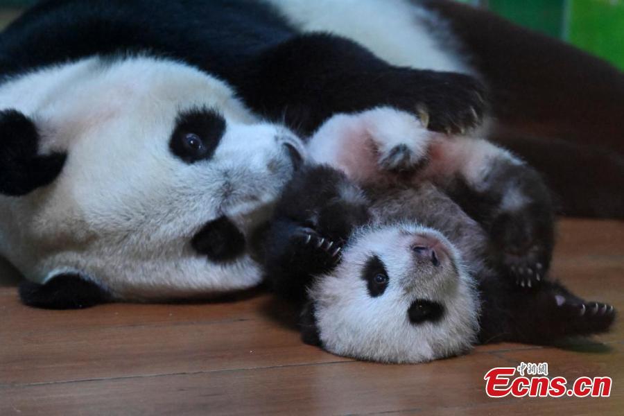 Meng Meng, the eldest of the world's only giant panda triplets, gave birth to the cub on June 18. The cub has grown from 178 grams to 5,570 grams as of Saturday.