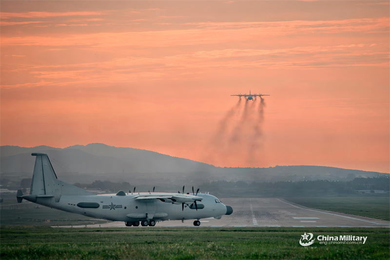 An anti-submarine patrol aircraft attached to an aviation unit with the Chinese PLA Navy takes off for a flight training exercise on August 15, 2024. (eng.chinamil.com.cn/Photo by Yang Lijian)