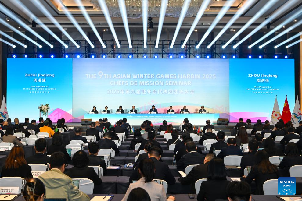 This photo taken on Sept. 23, 2024 shows the general view of Chefs de Mission Seminar of the 9th Asian Winter Games in Harbin, northeast China's Heilongjiang Province. (HAWGOC via Xinhua)