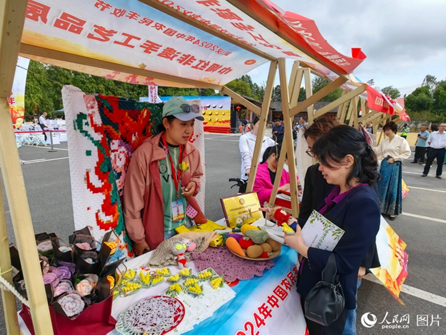 A customer browses products at a fair celebrating the seventh Chinese farmers' harvest festival in Wuhan city, central China's Hubei Province, Sept. 21, 2024. (People's Daily Online/Guo Tingting)