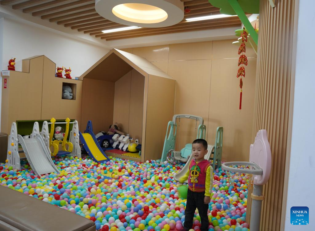 A child has fun at the citizen center of the Donghu residential community in Kashgar, northwest China's Xinjiang Uygur Autonomous Region, Sept. 22, 2024. (Xinhua/Zhao Yusi)