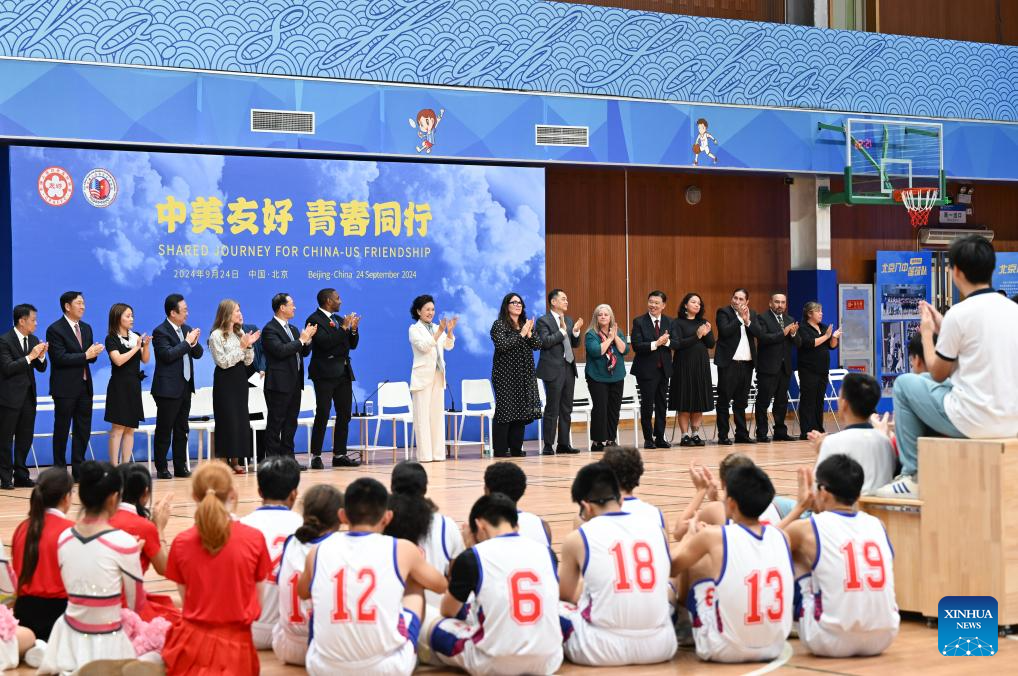 Peng Liyuan, wife of Chinese President Xi Jinping, attends a China-U.S. youth cultural and sports exchange activity at Beijing No. 8 High School, in Beijing, capital of China, Sept. 24, 2024. (Xinhua/Xie Huanchi)