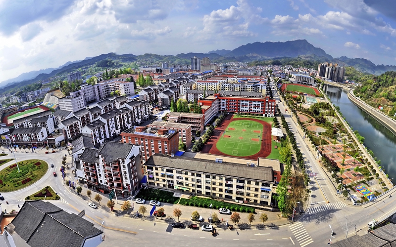Photo shows Ningqiang county surrounded by lucid water and lush mountains in northwest China's Shaanxi Province. (Photo/ Liu Binglin)