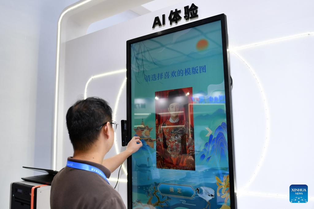 A man experiences the AI technology during the 2024 World Computing Conference in Changsha, central China's Hunan Province, Sept. 24, 2024. Under the theme "Calculating the World to Create a New Era -- Calculating the New Quality Productive Forces," the conference opened Tuesday in Changsha. (Xinhua/Chen Zhenhai)