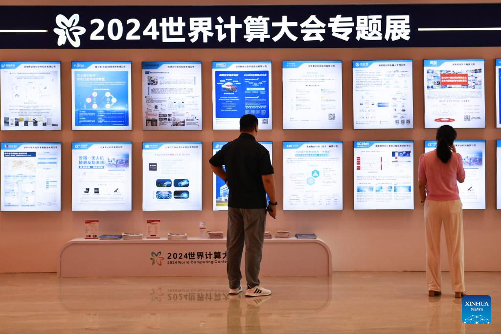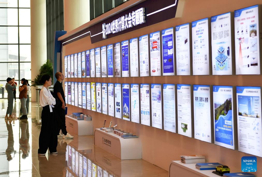 People visit an exhibition during the 2024 World Computing Conference in Changsha, central China's Hunan Province, Sept. 24, 2024. Under the theme "Calculating the World to Create a New Era -- Calculating the New Quality Productive Forces," the conference opened Tuesday in Changsha. (Xinhua/Chen Zhenhai)