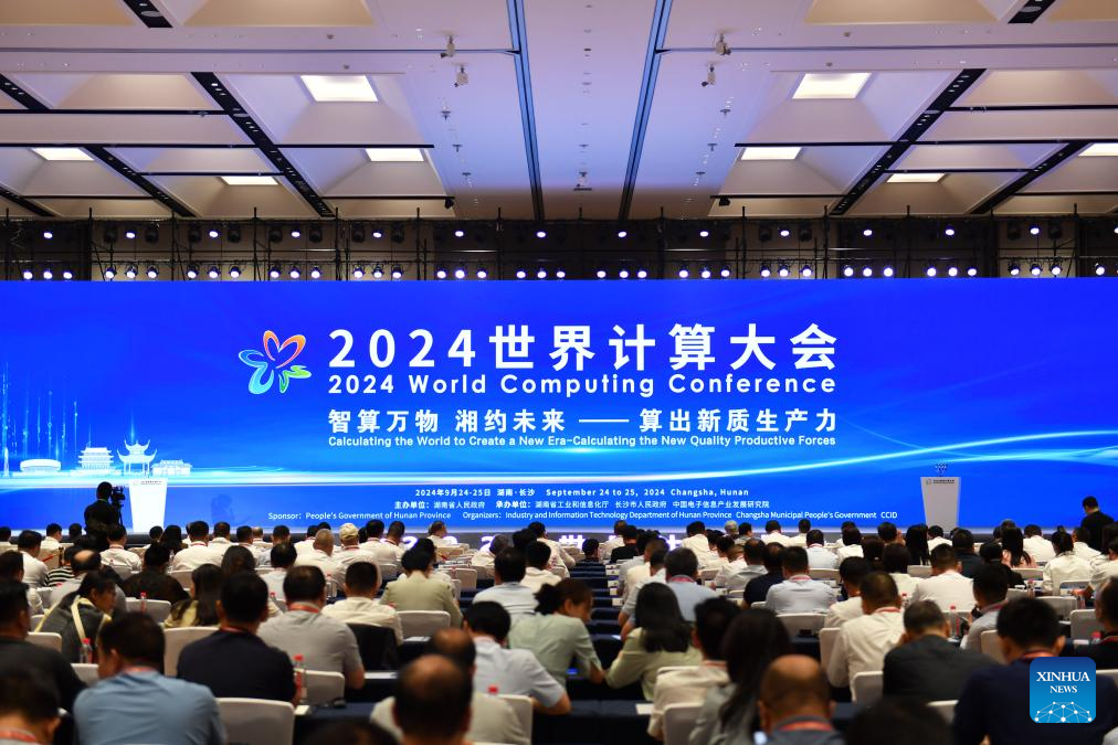 This photo taken on Sept. 24, 2024 shows the opening ceremony of the 2024 World Computing Conference in Changsha, central China's Hunan Province. Under the theme "Calculating the World to Create a New Era -- Calculating the New Quality Productive Forces," the conference opened Tuesday in Changsha. (Xinhua/Chen Zhenhai)