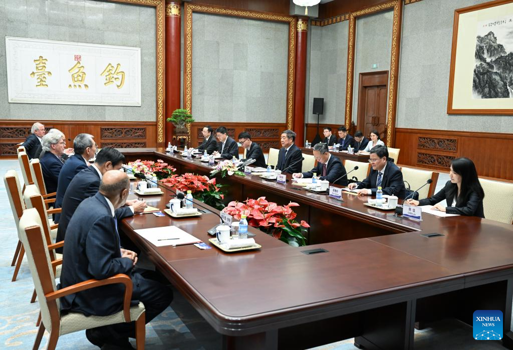 Chinese Vice Premier He Lifeng, also a member of the Political Bureau of the Communist Party of China (CPC) Central Committee, meets with members of the international advisory committee of China Investment Corporation (CIC), in Beijing, capital of China, Sept. 24, 2024. (Xinhua/Zhang Ling)