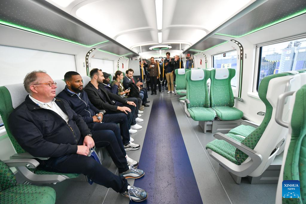 People view the interior of a train of CRRC displayed at the 2024 International Trade Fair for Transport Technology (InnoTrans 2024) in Berlin, Germany, Sept. 24, 2024. (Xinhua/Ren Pengfei)