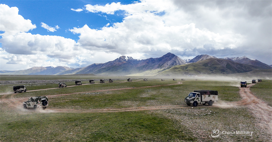 Vehicles attached to a brigade of the Chinese PLA Xizang Military Command conduct maneuver training in unfamiliar area on August 22, 2024. (eng.chinamil.com.cn/Photo by Hu Qiwu)
