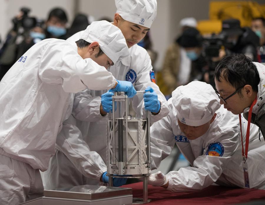 Scientific researchers prepare to weigh the moon samples retrieved by the Chang'e-5 probe in Beijing, capital of China, Dec. 17, 2020. (Xinhua/Jin Liwang)