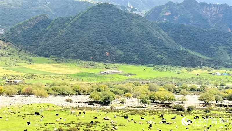 Photo shows herds of cattle and sheep either resting or foraging in the mountains. (People's Daily Online/Zhang Liping)