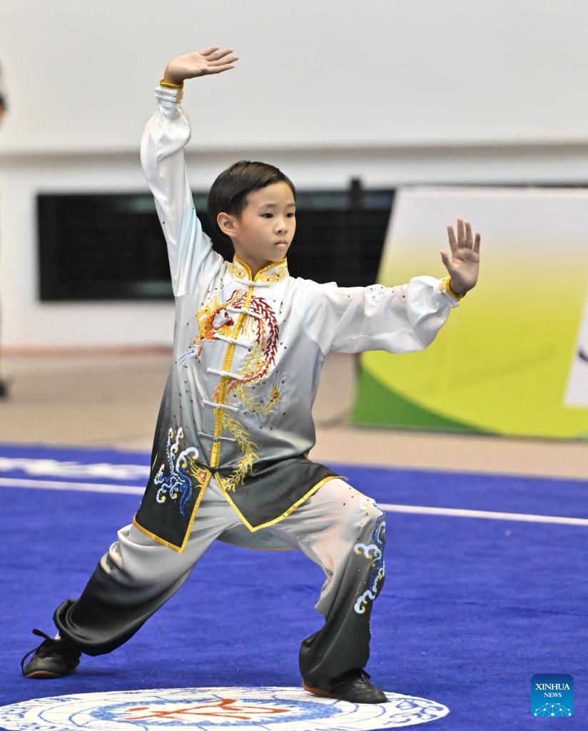 Chu Ching Hwa of Brunei competes during Group A competition of men's Taijiquan category of Taolu at the World Junior Wushu Championships in Bandar Seri Begawan, Brunei, Sept. 26, 2024. (Photo by Huang Zhiping/Xinhua)