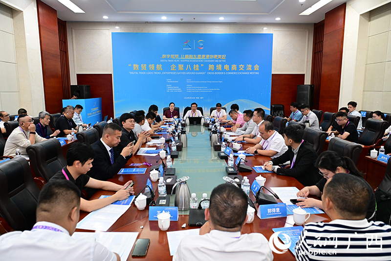 The "Digital Trade Leads Trend, Enterprises Gather Around Guangxi" Cross-border E-commerce Exchange Meeting was held in Nanning, capital of south China's Guangxi Zhuang Autonomous Region on Sept. 24, 2024.