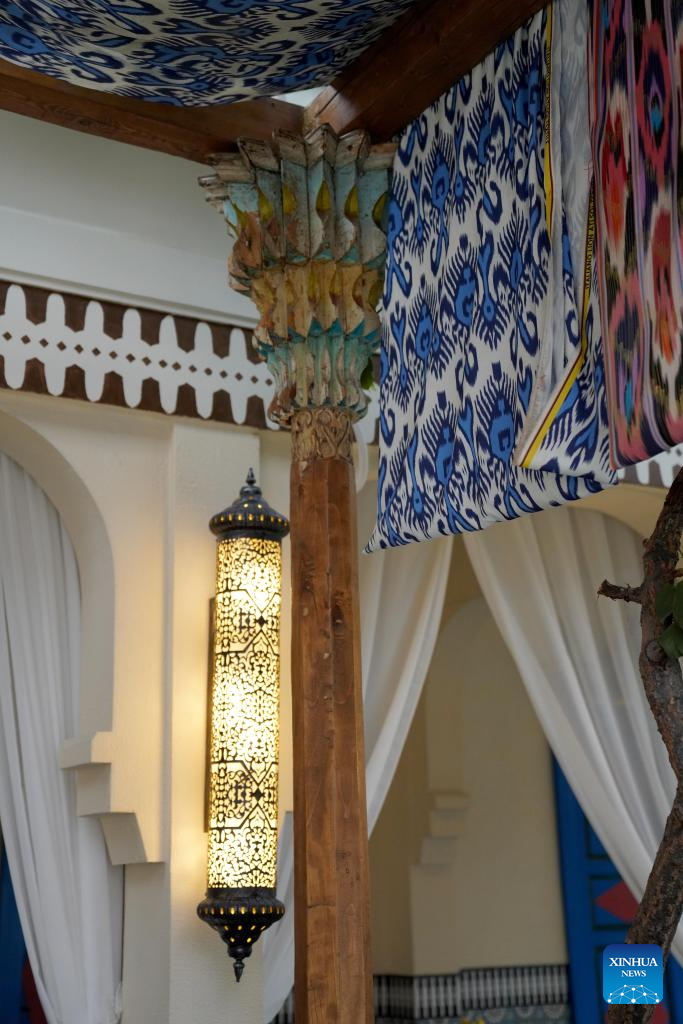 This photo taken on Sept. 27, 2024 shows decorations of a store on the Liuxing Street in Yining City, Ili Kazak Autonomous Prefecture, northwest China's Xinjiang Uygur Autonomous Region. (Xinhua/Zhao Yusi)