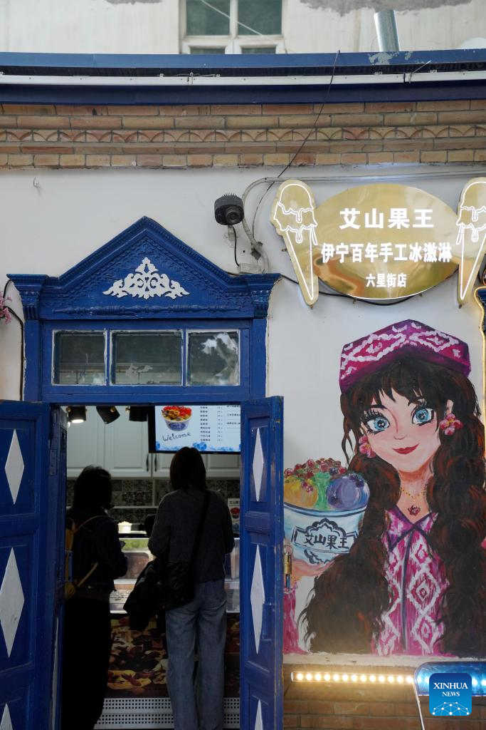 Tourists select ice cream on the Liuxing Street in Yining City, Ili Kazak Autonomous Prefecture, northwest China's Xinjiang Uygur Autonomous Region, Sept. 27, 2024. (Xinhua/Zhao Yusi)