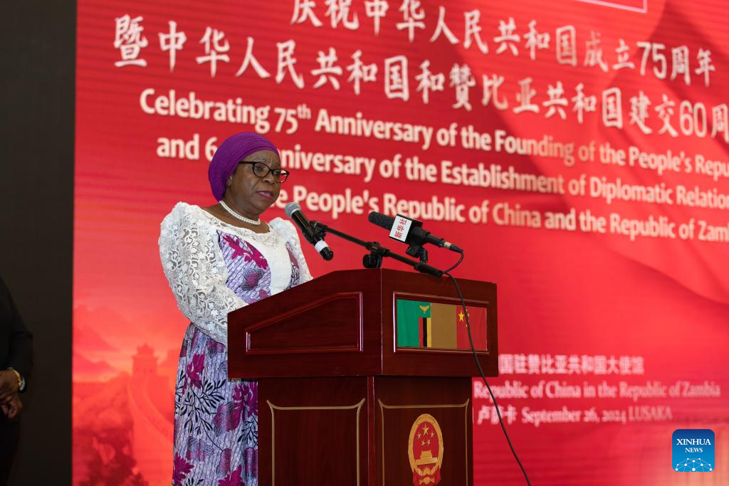 LUSAKA, Sept. 27 (Xinhua) -- The Chinese Embassy in Zambia hosted a reception on Thursday in Lusaka, the capital, celebrating the 75th anniversary of the founding of the People's Republic of China. This event also marked the 60th anniversary of diplomatic relations between China and Zambia.