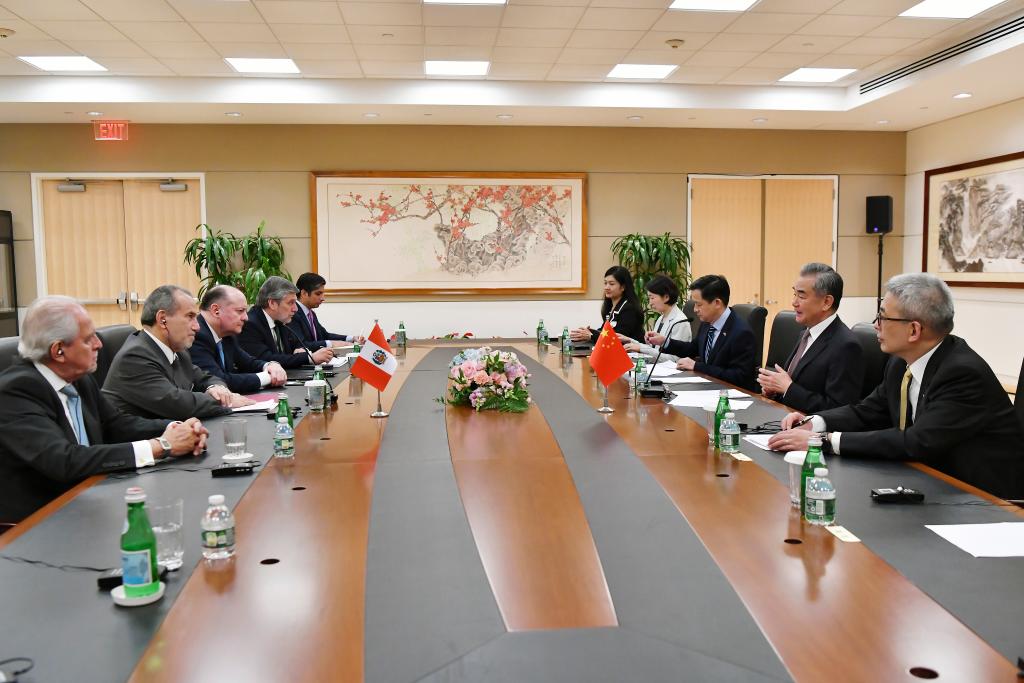 Wang, also a member of the Political Bureau of the Communist Party of China Central Committee, made the remarks during talks with Peruvian Foreign Minister Elmer Schialer Salcedo on the sidelines of the UN General Assembly in New York.