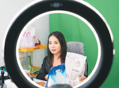 A livestreamer of a pet food company sells products via a livestream show in Nanhe district, Xingtai city, north China's Hebei Province. (Photo/Chen Lei)