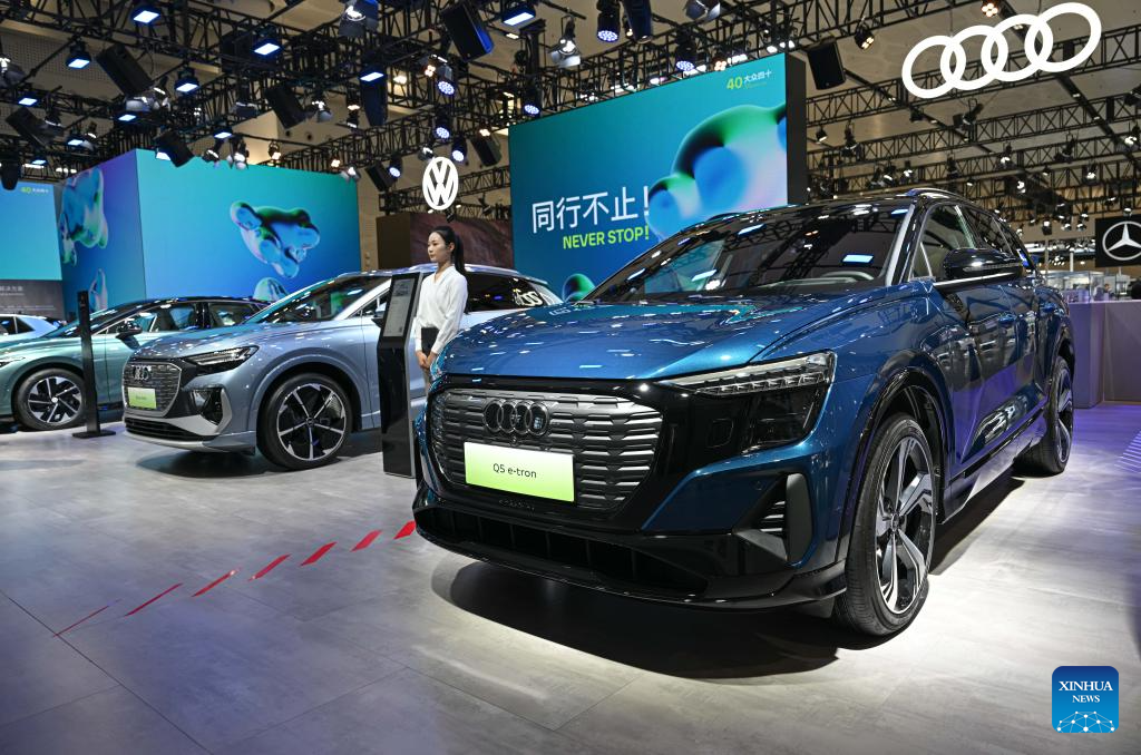 This photo taken on Sept. 28, 2024 shows an exhibition featuring cutting-edge technologies and products of new energy vehicle (NEV) in Haikou, south China's Hainan Province. More than 30 NEV firms showcased their new energy vehicles, batteries and intelligent-connected technology at the exhibition. (Xinhua/Pu Xiaoxu)
