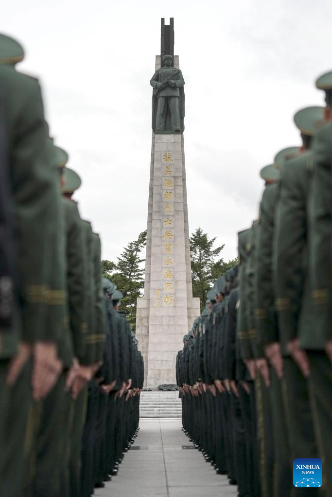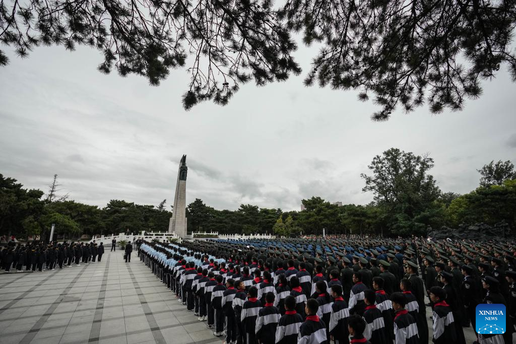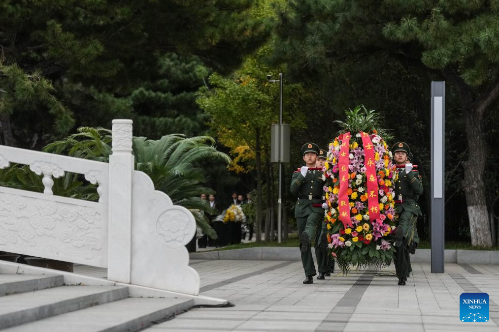 A mourning ritual is held at the Chinese People's Volunteers (CPV) martyrs' cemetery in Shenyang, northeast China's Liaoning Province, Sept. 30, 2024. The event was held to mark China's 11th Martyrs' Day, a day ahead of its National Day. (Xinhua/Pan Yulong)