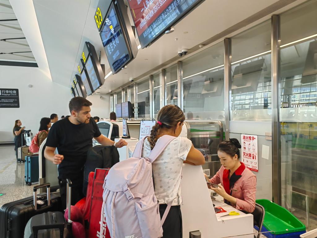 Foreign tourists go through procedures at Chengdu Tianfu International Airport in Chengdu, southwest China's Sichuan Province, June 15, 2024. (Xinhua/Dong Xiaohong)