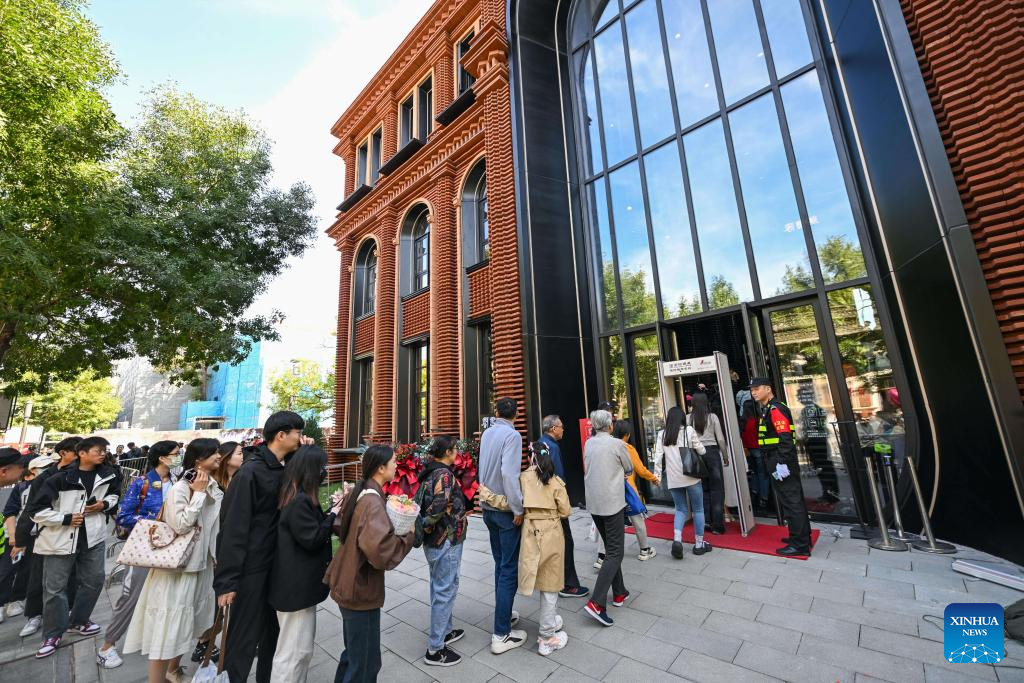 Readers queue up to enter Zhongshuge Bookstore in the Italian Style Area in Tianjin, north China, Oct. 2, 2024. Zhongshuge Bookstore, an urban renewal and upgrading project of Tianjin, attracts many tourists during the National Day holiday. It will serve citizens with various cultural activities to promote reading in the future. (Xinhua/Sun Fanyue)