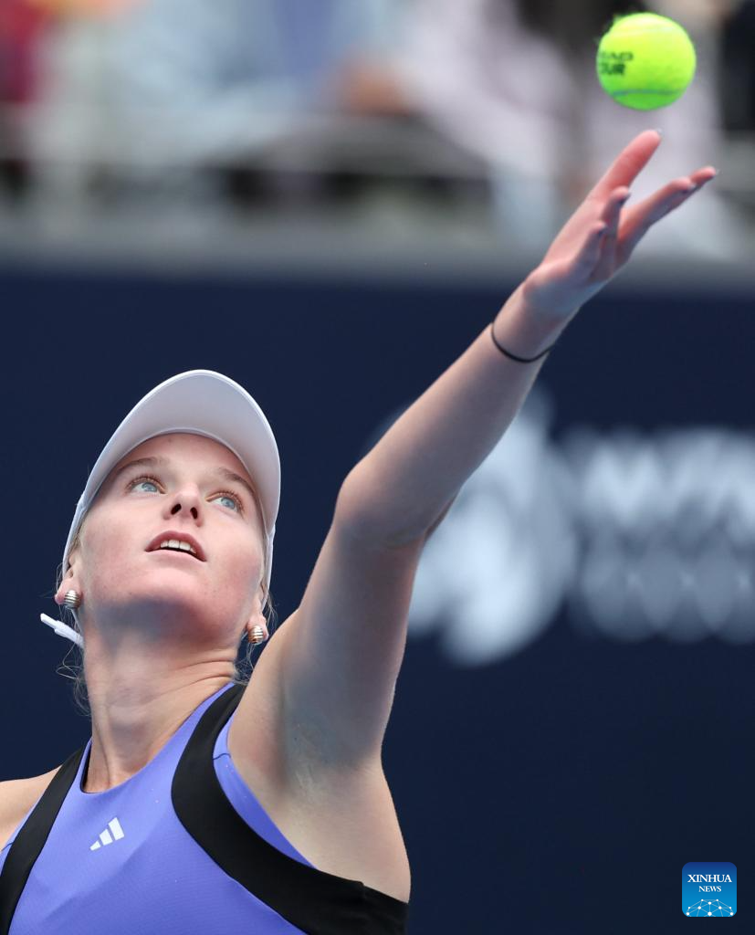 Ashlyn Krueger of the United States serves during the women's singles third round match against Aryna Sabalenka of Belarus at 2024 China Open tennis tournament in Beijing, capital of China, Sept. 30, 2024. (Xinhua/Zhang Chenlin)