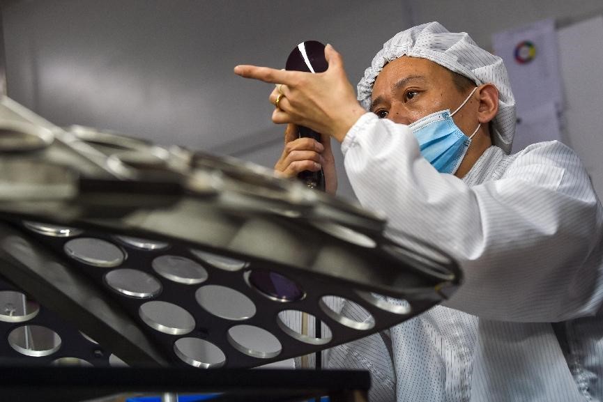 A worker works in an optical lens factory in Danyang, east China's Jiangsu province. (People's Daily Online/Fang Dongxu)