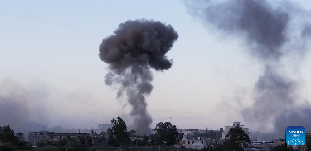 This photo taken by cell phone shows smoke rising following airstrikes in Sanaa, Yemen, Oct. 4, 2024. The United States Central Command (CENTCOM) said on Friday its forces conducted airstrikes on 15 targets in Houthi-controlled areas of Yemen. (Photo by Mohammed Azaki/Xinhua)