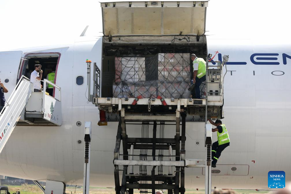 BEIRUT, Oct. 4 (Xinhua) -- An aid plane carrying 55 tons of aid and medical supplies arrived Friday in Lebanon from the United Arab Emirates, the National News Agency (NNA) reported.