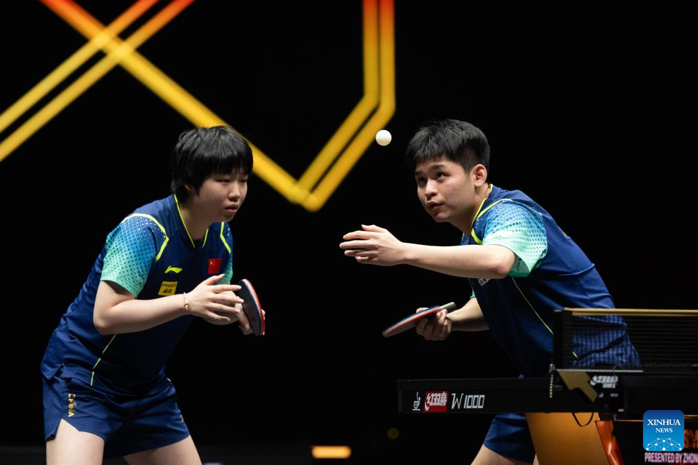 BEIJING, Oct. 4 (Xinhua) -- Second-seeded pair Lin Shidong and Kuai Man clinched an 11-5, 3-11, 11-5, 11-5 victory over Lin Gaoyuan and Wang Yidi in an all-Chinese mixed doubles final at the World Table Tennis (WTT) China Smash on Friday.