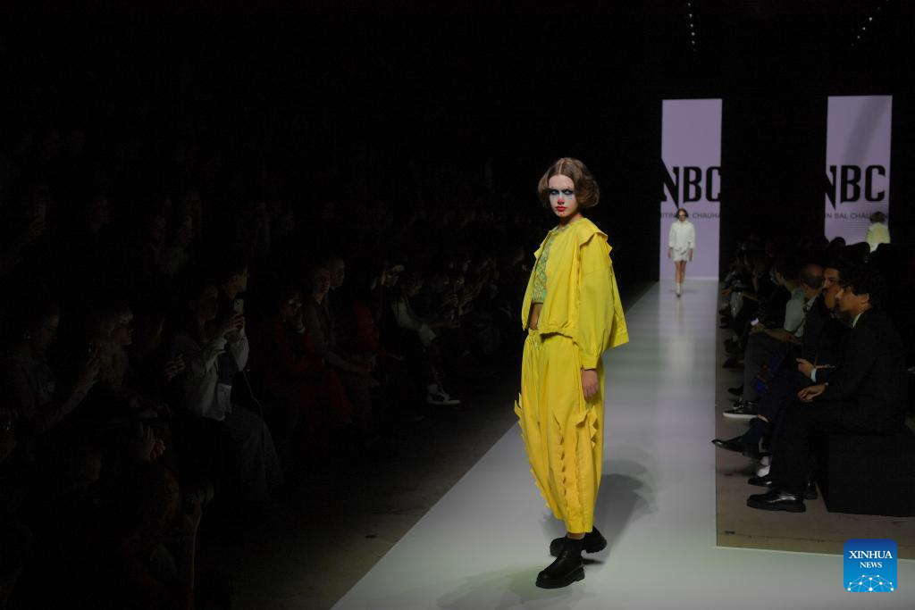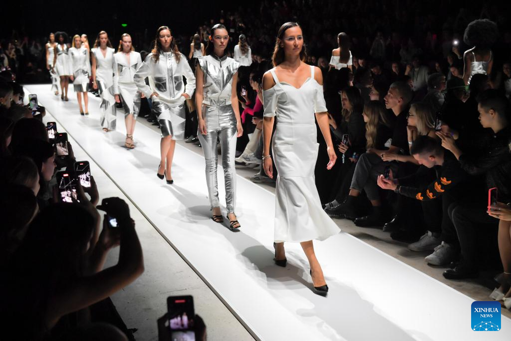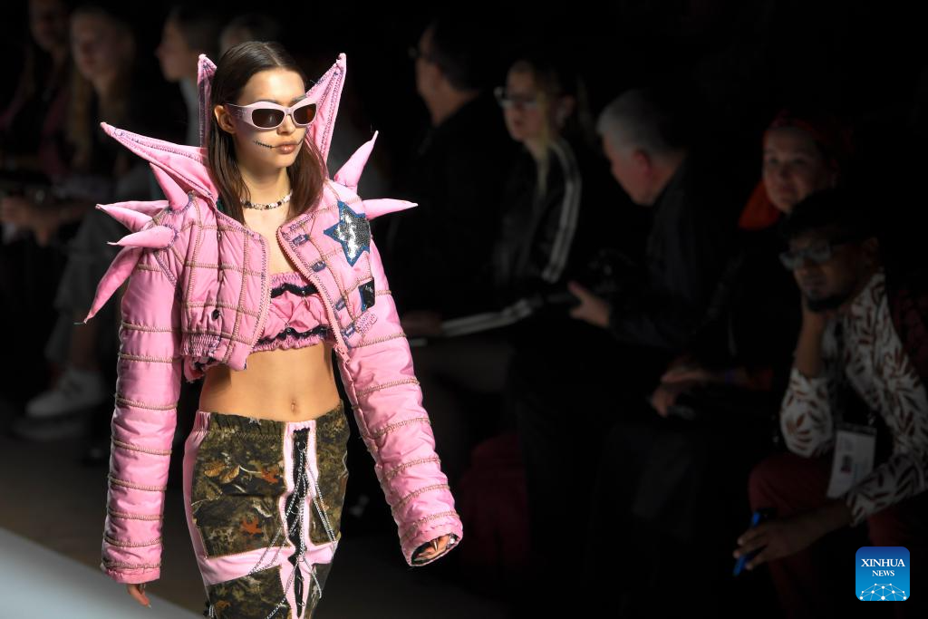 Models present creations during the Moscow Fashion Week in Moscow, Russia, on Oct. 4, 2024. The Moscow Fashion Week kicked off on Friday and will last until Oct. 9. (Photo by Alexander Zemlianichenko Jr/Xinhua)