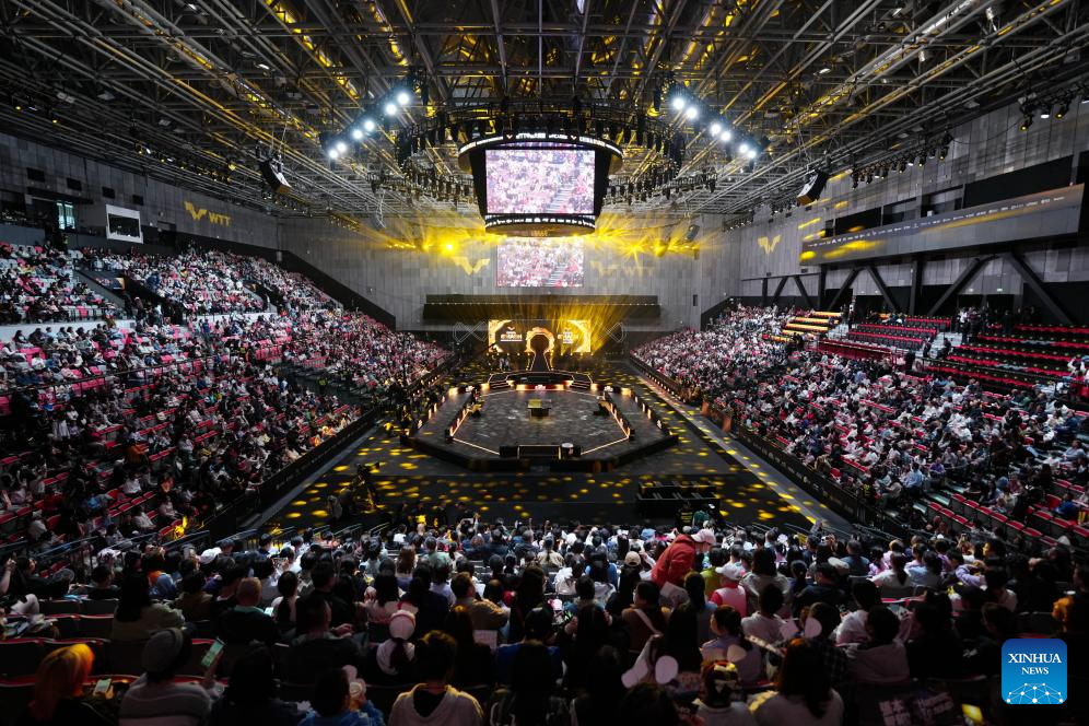 People watch the 2024 World Table Tennis (WTT) China Smash at the Shougang Park in Beijing, China, Oct. 3, 2024. During the week-long National Day holiday starting on Oct. 1, Chinese people take a break to travel and enjoy leisure activities. Travel and holiday consumption have continued to boom, mirroring the vitality of Chinese economy. (Xinhua/Zhang Chenlin)