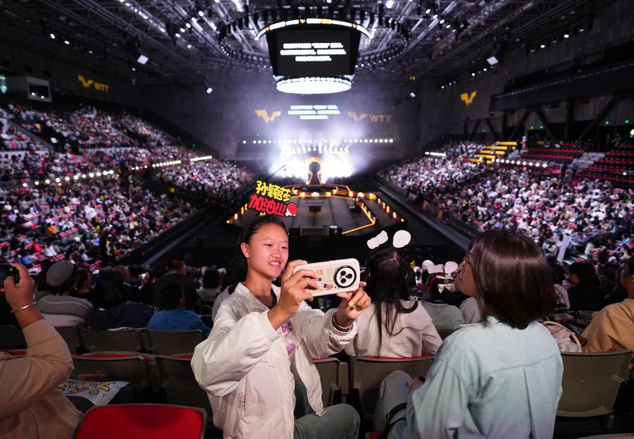 People watch the 2024 World Table Tennis (WTT) China Smash at the Shougang Park in Beijing, China, Oct. 3, 2024. (Xinhua/Zhang Chenlin)