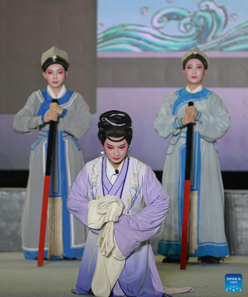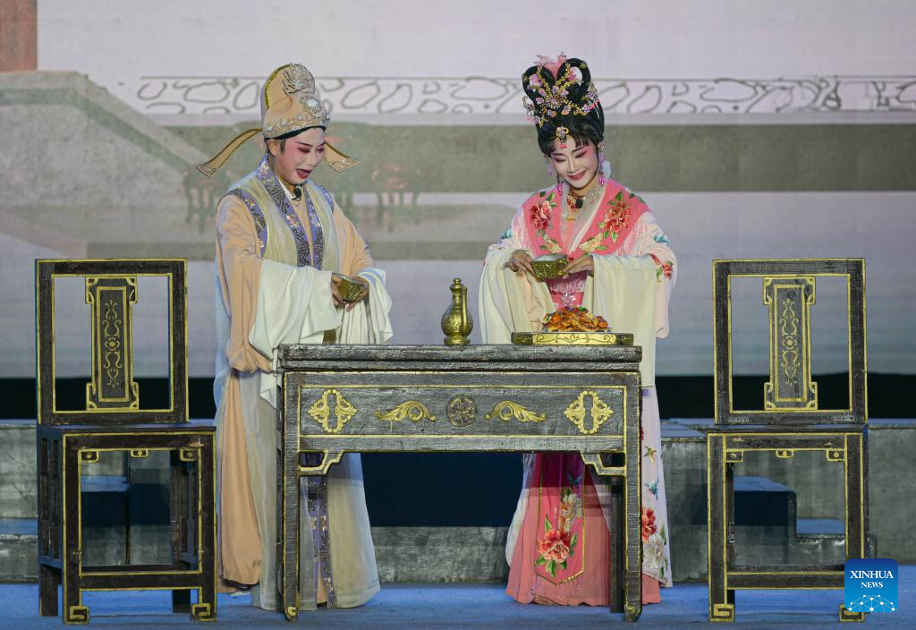 Actors stage Qiong Opera at the Evergreen Park in Haikou, south China's Hainan Province, Oct. 6, 2024. (Xinhua/Pu Xiaoxu)