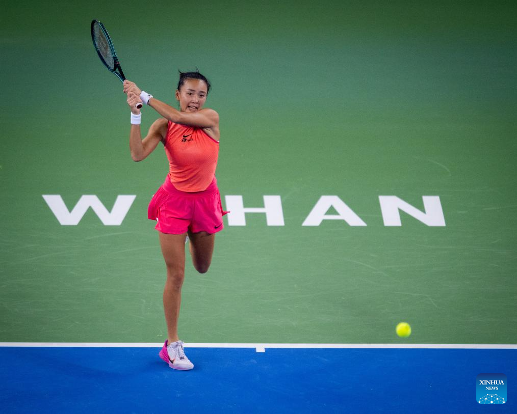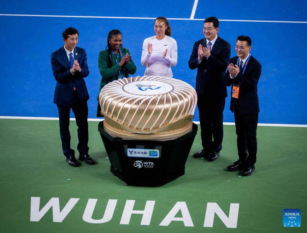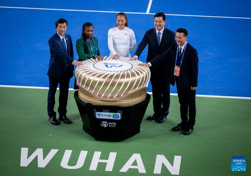 Chinese tennis player Zheng Qinwen (C) attends the opening ceremony of the 2024 Wuhan Open tennis tournament in Wuhan, capital of central China's Hubei Province, Oct. 7, 2024. (Xinhua/Wu Zhizun)