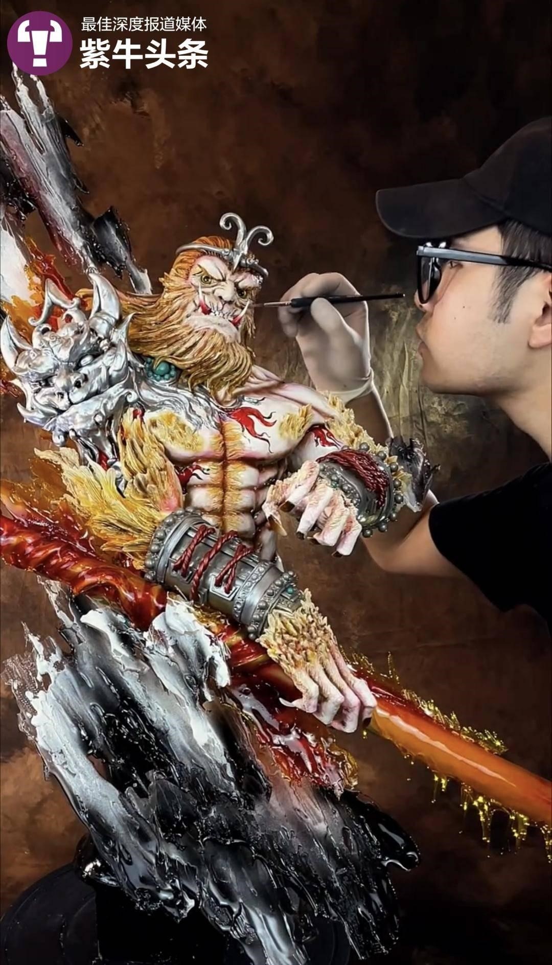 Zhang Bo, a 27-year-old Chinese sugar artist, creates a sugar sculpture artwork featuring Sun Wukong, the iconic figure from the classic Chinese mythological novel "Journey to the West". (yangtse.com/courtesy of Zhang Bo)
