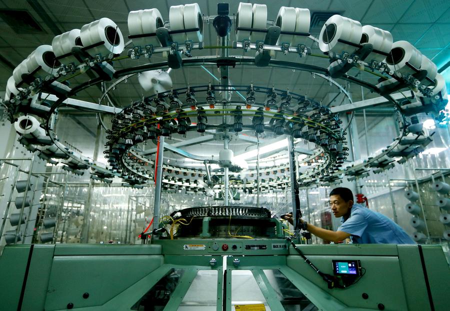 A worker is pictured at the production line of a textile company in Jimo district of Qingdao city, East China's Shandong province, Oct 7, 2024. (Photo/Xinhua)