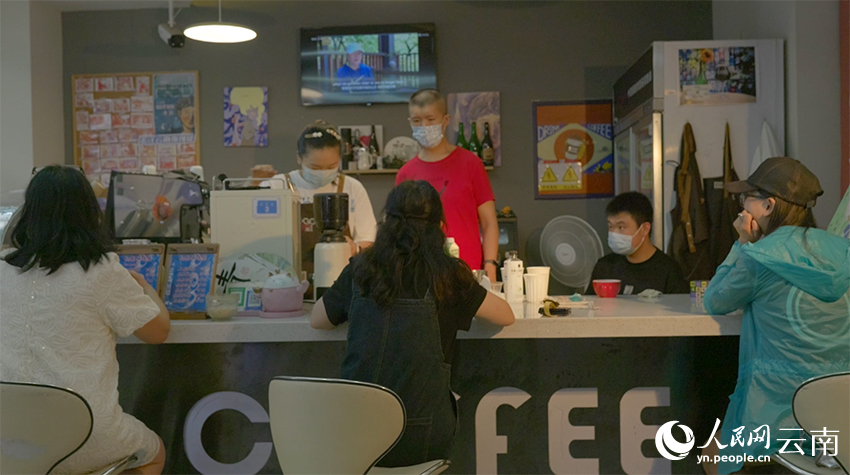 Photo shows a picture at Chuxing Cafe in Hepinglu neighborhood, Taihe subdistrict, Guandu district, Kunming, capital of southwest China's Yunnan Province. (People's Daily Online/Zhuang Zhibin)