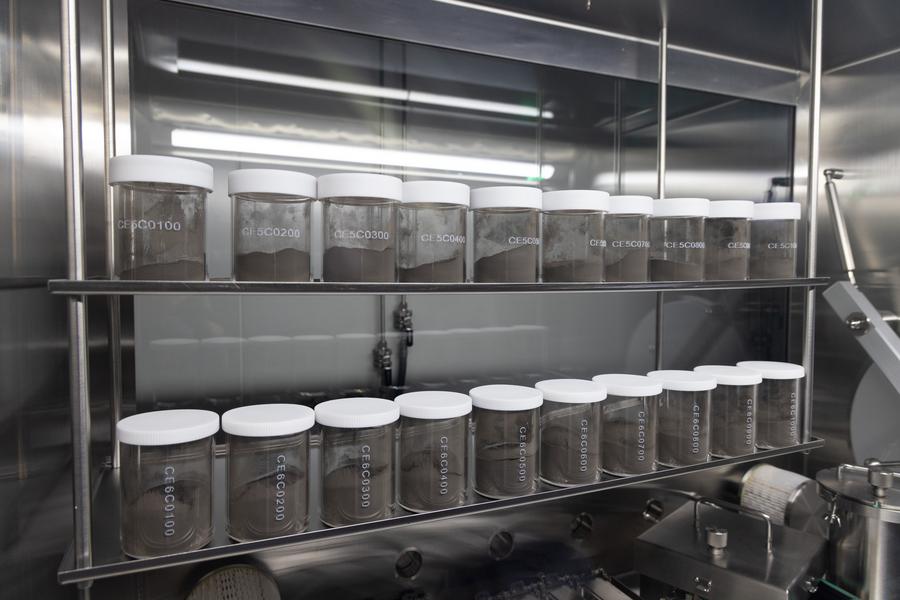 This photo shows lunar samples retrieved by the Chang'e-6 mission at the lunar sample laboratory in the National Astronomical Observatories of the Chinese Academy of Sciences (CAS) in Beijing, capital of China, Sept. 24, 2024. (Xinhua/Jin Liwang)