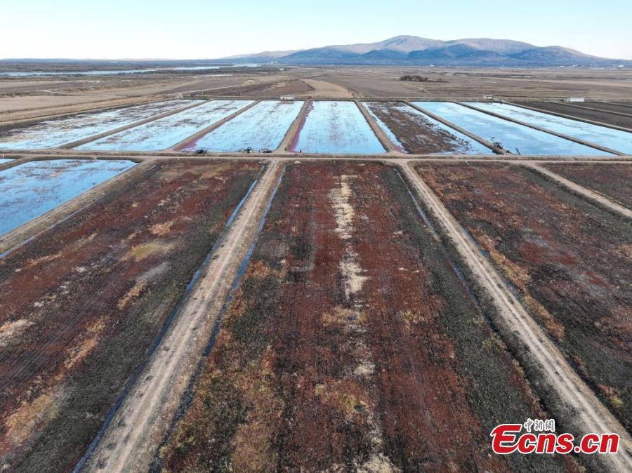 Aerial view of a cranberry field in Fuyuan, northeast China's Heilongjiang Province, Oct. 11, 2024. (Photo: China News Service/Mao Jianjun)