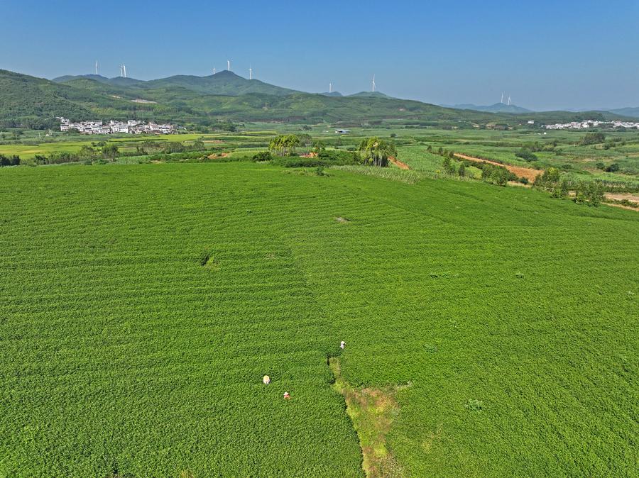 A drone photo taken on Oct. 10, 2024 shows a tea garden in Sigao Village, Miaohuang Township of Xiangzhou County, Laibin City of south China's Guangxi Zhuang Autonomous Region. (Xinhua/Zhou Hua)