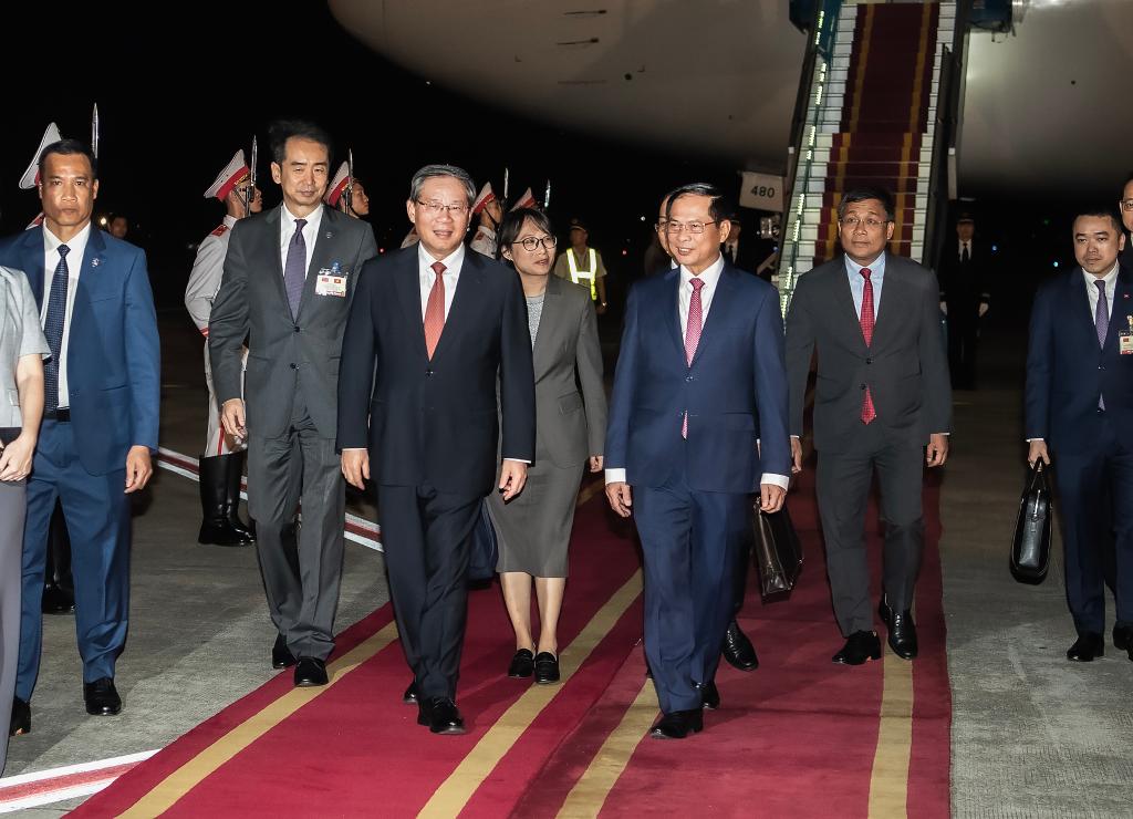 Chinese Premier Li Qiang arrives at Noi Bai International Airport in Hanoi, Vietnam, Oct. 12, 2024. Li arrived here on Saturday for an official visit to Vietnam, at the invitation of his Vietnamese counterpart, Pham Minh Chinh. (Xinhua/Ding Haitao)