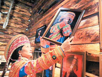 Gu Yan prepares for an exhibition at the Lisu intangible cultural heritage center of Yanbian county in Panzhihua city, southwest China's Sichuan Province. (Photo/Wang Lei)