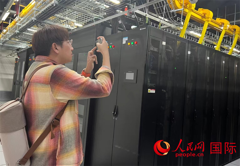 Park Daeil, a South Korean vlogger, visits the intelligent computing center of telecom giant China Mobile in Karamay, northwest China's Xinjiang Uygur Autonomous Region. (People's Daily Online/Zeng Shurou)