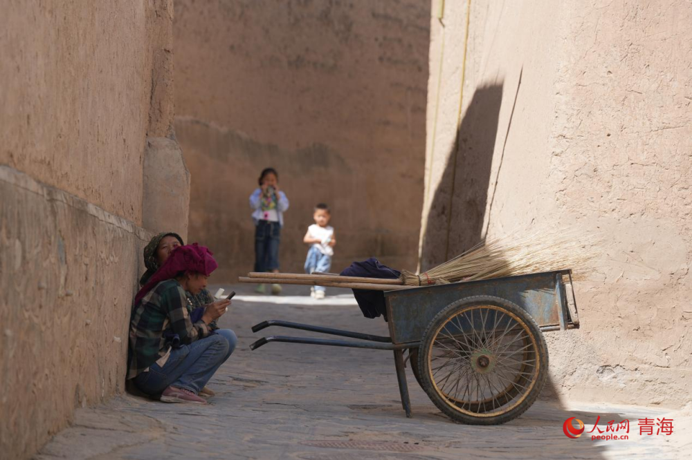 Photo shows residents in Guomari ancient castle in Tongren city, Huangnan Tibetan Autonomous Prefecture, northwest China's Qinghai Province. (People's Daily Online/Chen Mingju)