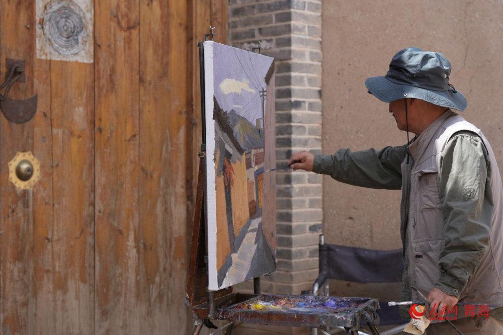 An artist draws a painting in Guomari ancient castle in Tongren city, Huangnan Tibetan Autonomous Prefecture, northwest China's Qinghai Province. (People's Daily Online/Chen Mingju)
